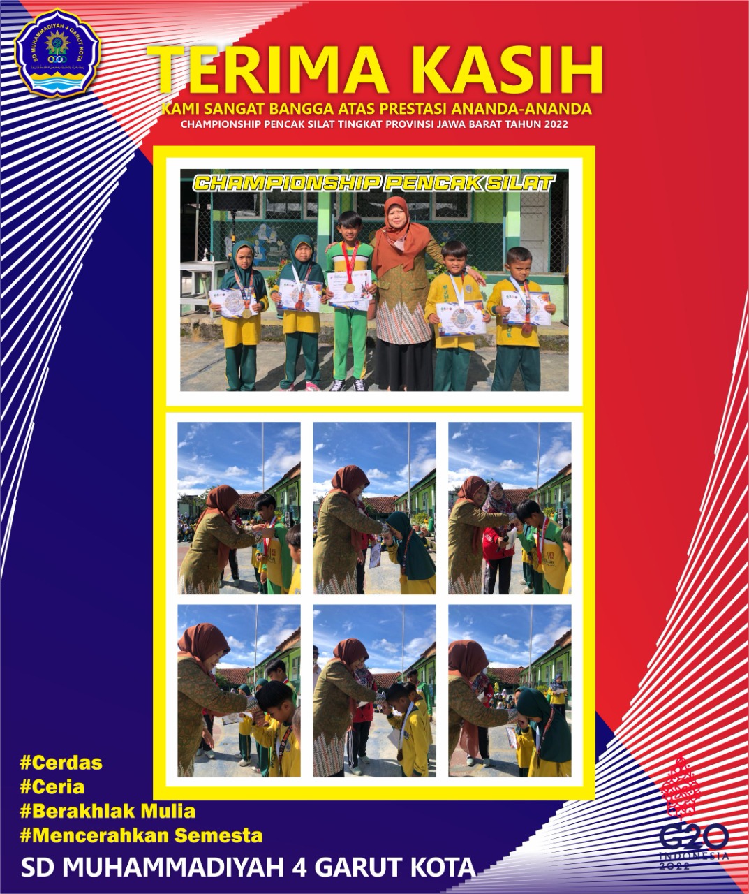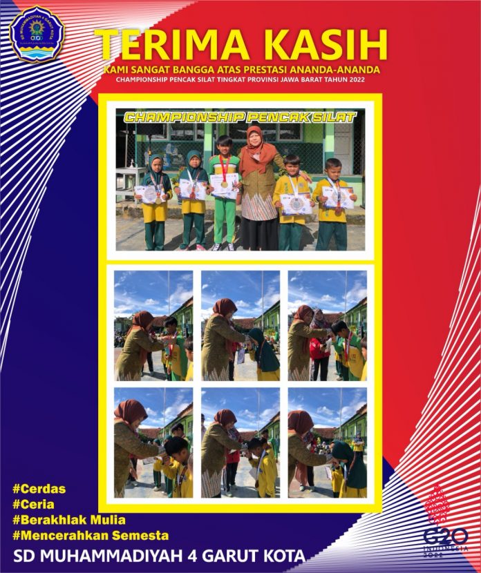 GARKOT, (teraskandaga.com).- SD Muhammadiyah 4, Kecamatan Garut Kota kembali menambah pundi prestasi, kali ini, lima siswanya berhasil menorehkan prestasi pada Kejuaraan Pencak Silat Championship Antar Pelajar se Jawa Barat, memperebutkan Piala Kadispora Jabar dan Piala Dandim 0611/Garut dalam rangka HUT TNI ke-77 yang berlangsung di SOR R.A.A Adiwijaya Kabupaten Garut dari tanggal 7-10 Oktober 2022 baru lalu.