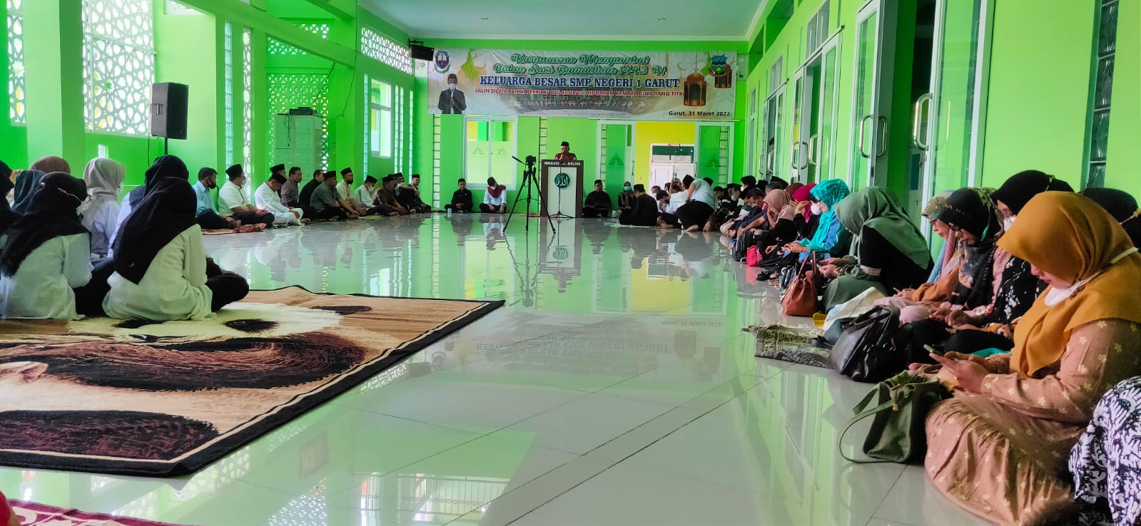 teraskandaga.com – Sholawat bergema di Mesjid Al-Ihsan SMPN 1 Garut, tak terkecuali seluruh pendidik, tenaga kependidikan, dan siswa pengurus organisasi serta warga sekolah lainnya, hadir bersilaturahmi sekaligus keramasan dalam menyambut bulan Suci Ramadhan 1443 Hijriah.