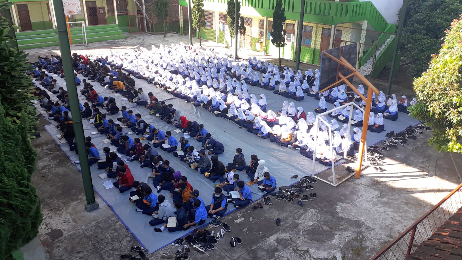 teraskandaga.com – Mungkin hanya SMPN 1 Cikajang yang punya lapangan upacara multifungsi dengan beratapkan tenda jenis kanopi.