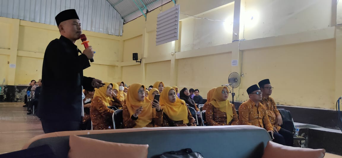 GARKOT, (teraskandaga.com).- Kantor Kementerian Agama Kabupaten Garut melakukan Pembinaan dan Sosialisasi Implementasi Penguatan Moderasi Beragama (PMB) pada Kurikulum Merdeka dan Platform Merdeka Mengajar (PMM) di GOR SMPN 2 Garut, Jl. A. Yani, Kelurahan Pakuwon, Kecamatan Garut Kota, Senin (19/9/2022).