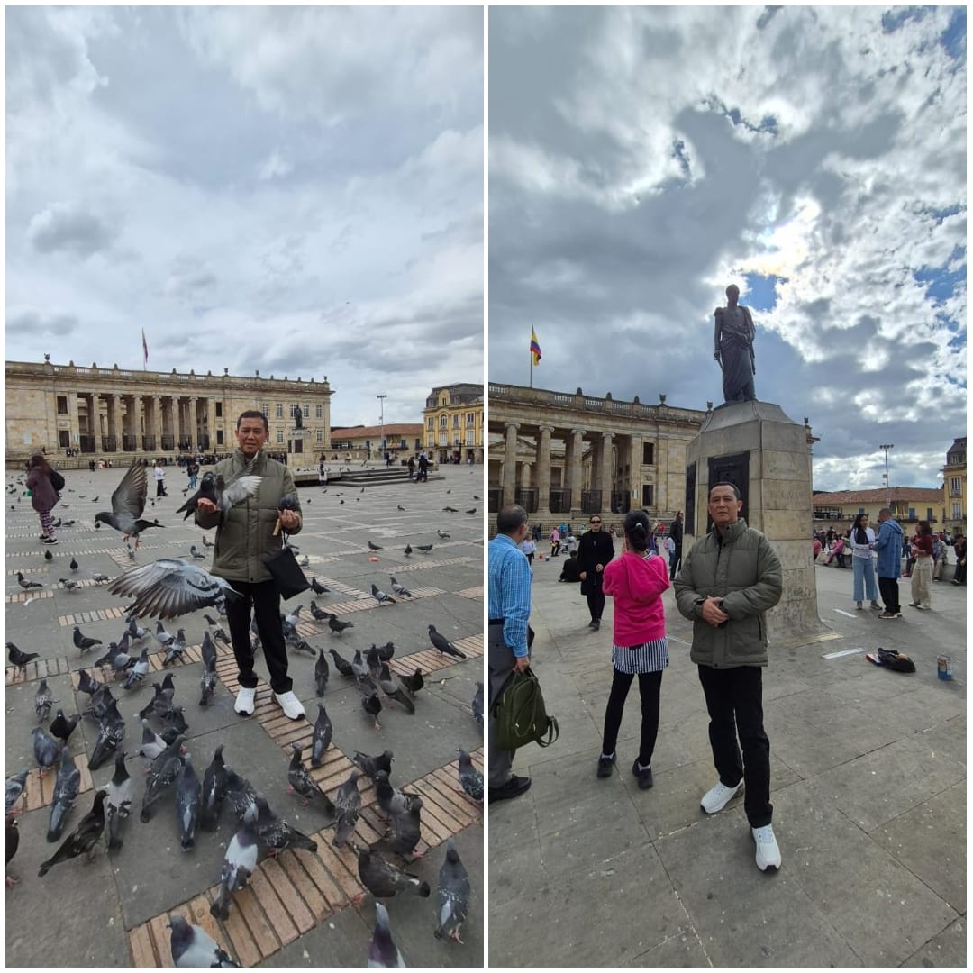 Kegiatan lain yang penulis lakukan yaitu mengunjungi Plaza de Bolívar. Tempat ini merupakan salah satu alun-alun yang paling terkenal di Kolombia. Berlokasi di jantung kota Bogotá, alun-alun ini menjadi saksi bisu perjalanan sejarah bangsa Kolombia. Dibangun pada abad ke-16, Plaza de Bolívar awalnya berfungsi sebagai pusat perdagangan dan pemerintahan di era kolonial Spanyol. Nama “Bolívar” sendiri diberikan untuk menghormati Simon Bolívar, pahlawan nasional Amerika Latin yang berjasa dalam perjuangan kemerdekaan dari kekuasaan Spanyol.