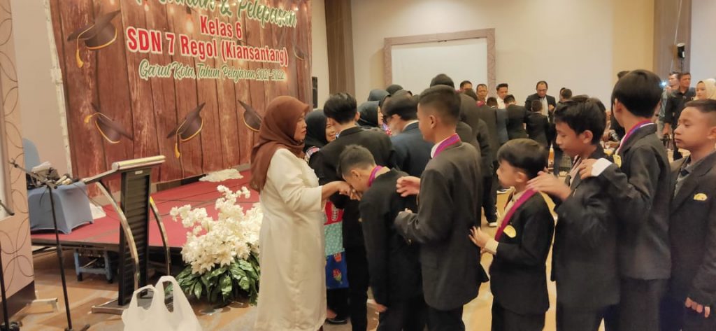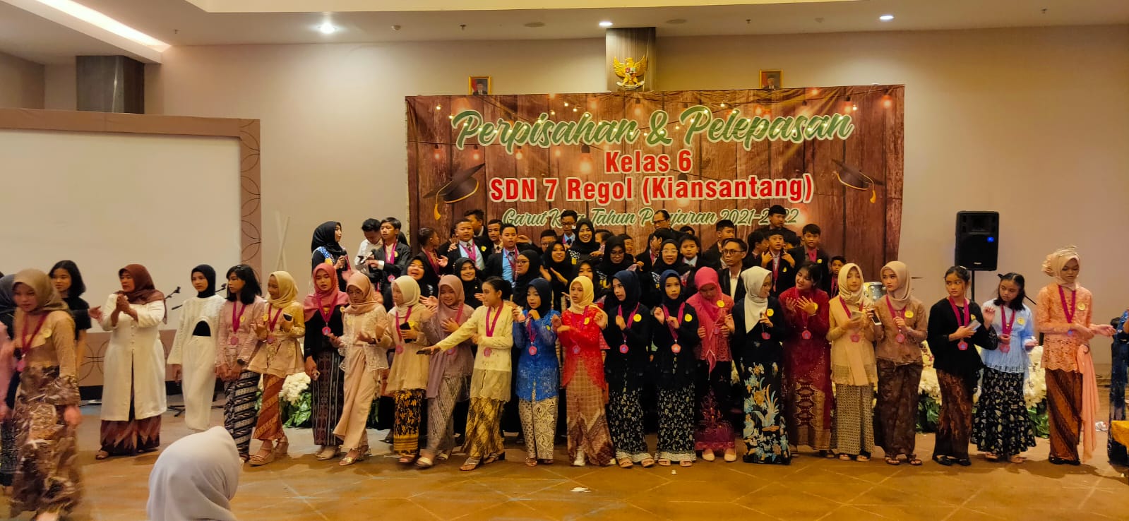 TARKID, (teraskandaga.com).- Sejumlah 69 orang siswa kelas VI SDN 13 Regol (Kiansantang) tahun ajaran 2021-2022, menggelar acara perpisahan dan pelepasan di Fave Hotel, Jalan Cimanuk No. 338, Sukagalih, Kecamatan Tarogong Kidul, Kabupaten Garut, Kamis (30/6/2022).