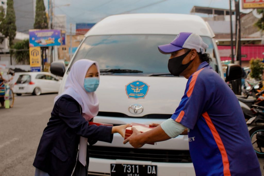 Tak hanya berhenti disitu, civitas SMKN 1 Garut bersama OSIS melanjutkannya dengan Rantang Siswa yaitu memberikan makanan dan minuman untuk berbuka puasa di seputaran perkotaan mulai pukul 17.00 WIB hingga waktu buka puasa, Sabtu (24/4/2021).