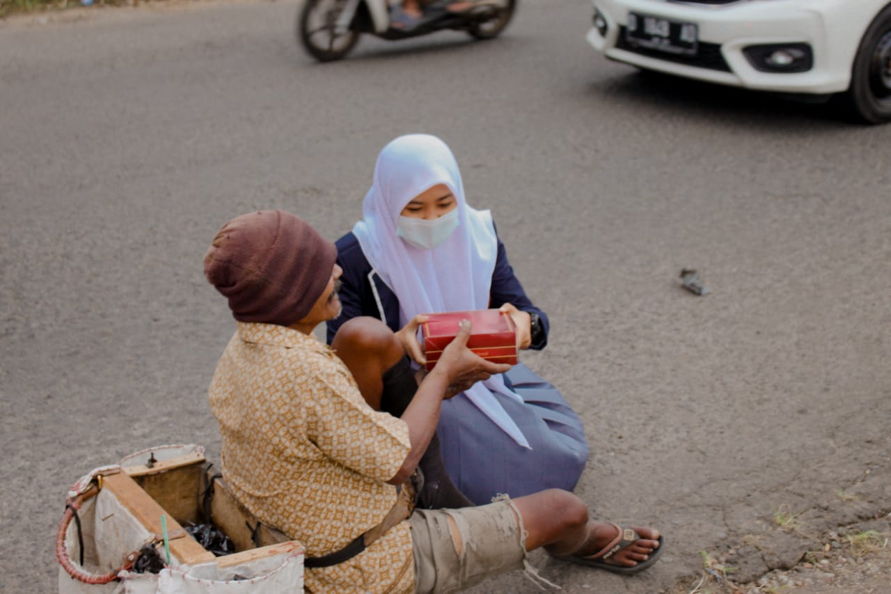 Tak hanya berhenti disitu, civitas SMKN 1 Garut bersama OSIS melanjutkannya dengan Rantang Siswa yaitu memberikan makanan dan minuman untuk berbuka puasa di seputaran perkotaan mulai pukul 17.00 WIB hingga waktu buka puasa, Sabtu (24/4/2021).