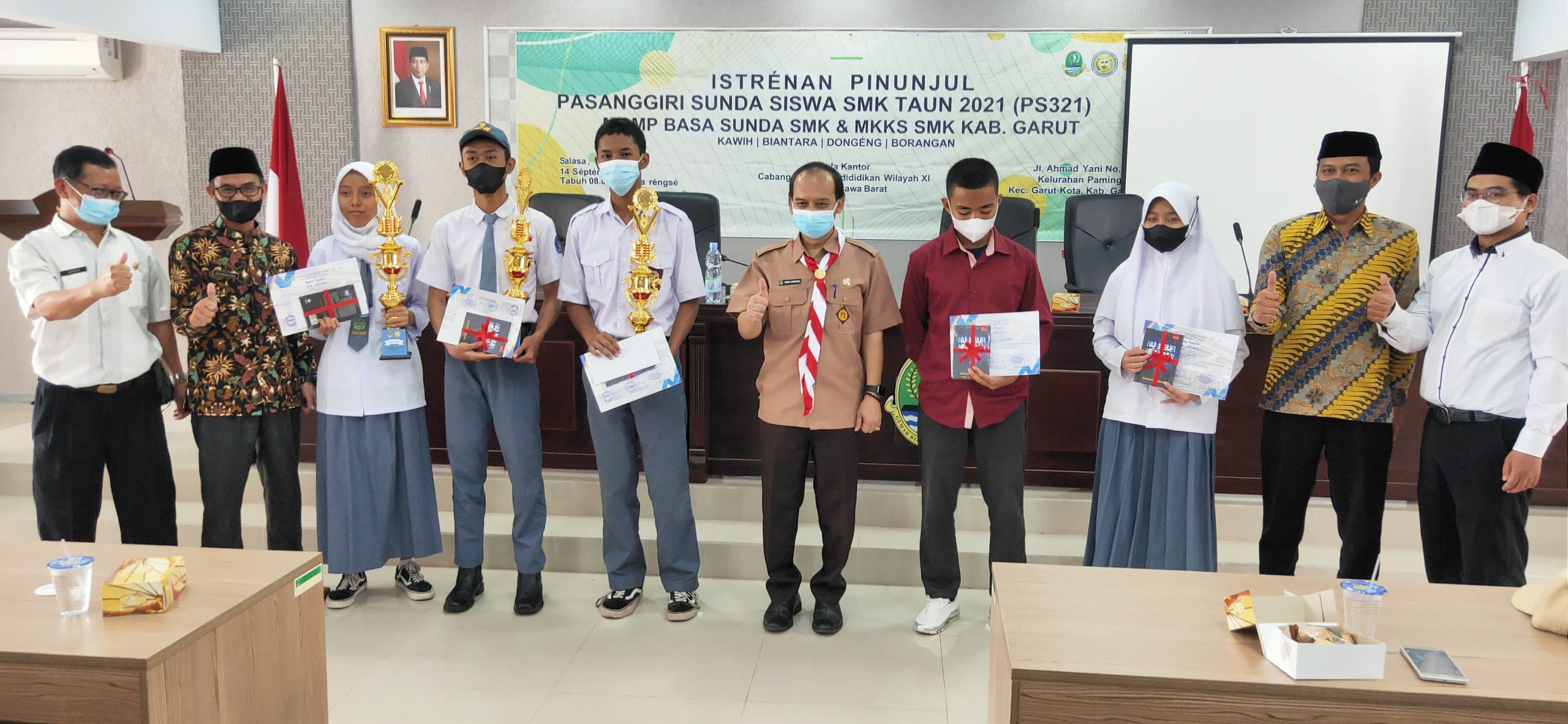 Hal itu terungkap, dengan digelarnya istrenan pinunjul atau penyerahan piala dan piagam kepada para juara yang dibuka Kepala KCD Pendidikan Wilayah XI Jawa Barat, Drs. H. Aang Karyana, M.Pd., bersama Kabid SDM, Ketua MKKS SMK Kabupaten Garut, Acep Sundjana Djakaria, SE., MM., dan Ketua MGMP Basa Sunda, Ahmad Yani, S.Pd., M.Pd., di Auditorium KCD Pendidikan Wilayah XI Jawa Barat, di Jl. A. Yani, Kecamatan Garut Kota, Selasa (14/09/2021).