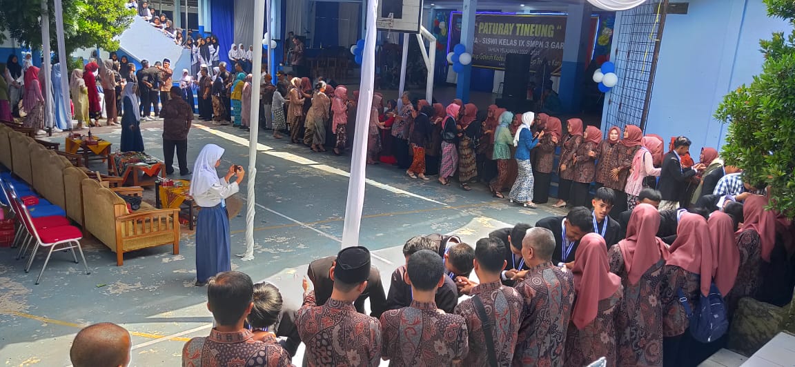 Mengusung tema “Sakiceup Galeuh Kadeudeuh Pangjajap Tresna Kanyaah”, acara “Paturay Tineung” siswa kelas IX tahun pelajaran 2022/2023 ini berlangsung lapangan upacara SMPN 3 Garut di Jl. SMPN 3 Garut No. 3, Kelurahan Kota Wetan, Kecamatan Garut Kota, Kabupaten Garut, Provinsi Jawa Barat, Sabtu (27/5/2023).