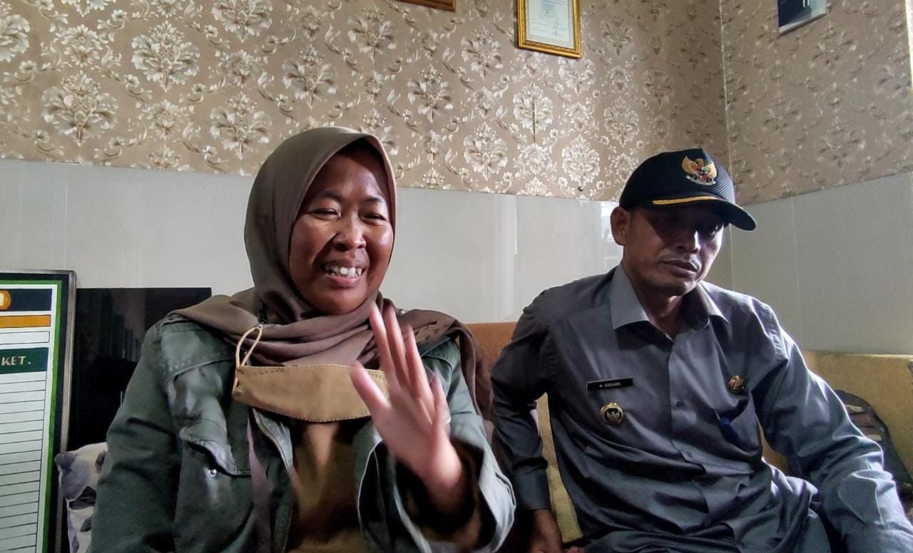 Kepala Desa Mekarsari H. Dadang didampingi sekdes Lilis Susilawati (kiri)