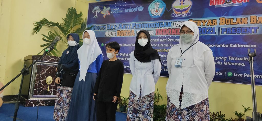 Usai melaksanakan upacara, semua bergerak ke gedung olahraga melakukan kegiatan penting yaitu deklarasi Roots Day Anti Perundungan dan Gebyar Bulan Bahasa dari Doega untuk Indonesia, dengan launching buku hasil karya guru (Wisata Literasi Guru), buku hasil karya siswa (Wisata Literasi Siswa), dan launching majalah digital, podcast di YouTube, serta channel Doega.