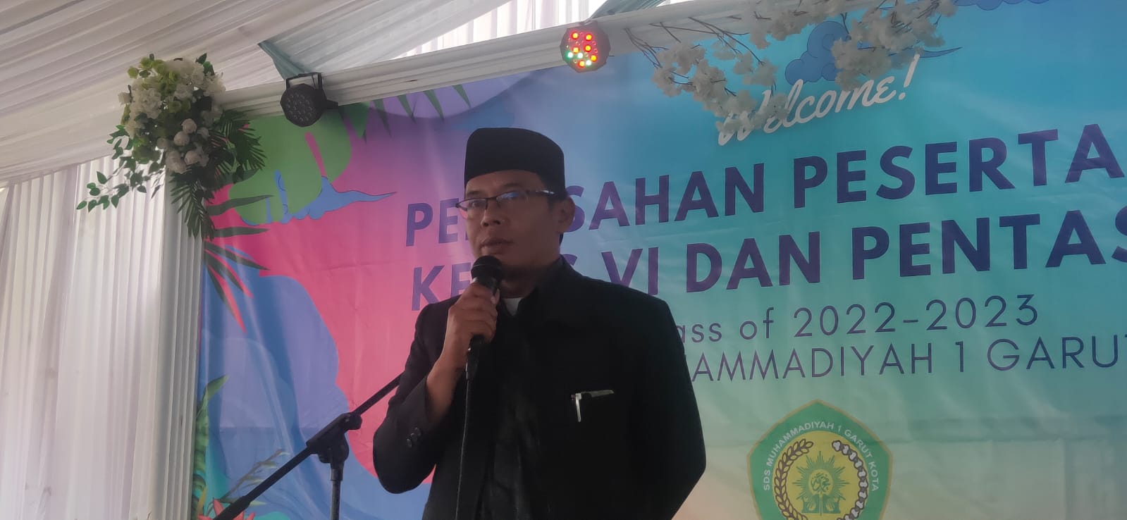 Kalau anak-anak hari ini sudah 6 tahun belajar ilmu mungkin kekurangan banyak waktu untuk belajar akhlak. Oleh karenanya, ujar H. Asep Irfan, atas nama Pimpinan Cabang Muhammadiyah Garut Kota memberikan pesan kepada para orang tua wali anaknya, untuk tetap mengajarkan adab dan akhlak sekalipun tidak lagi sekolah di SD Muhammadiyah.