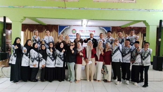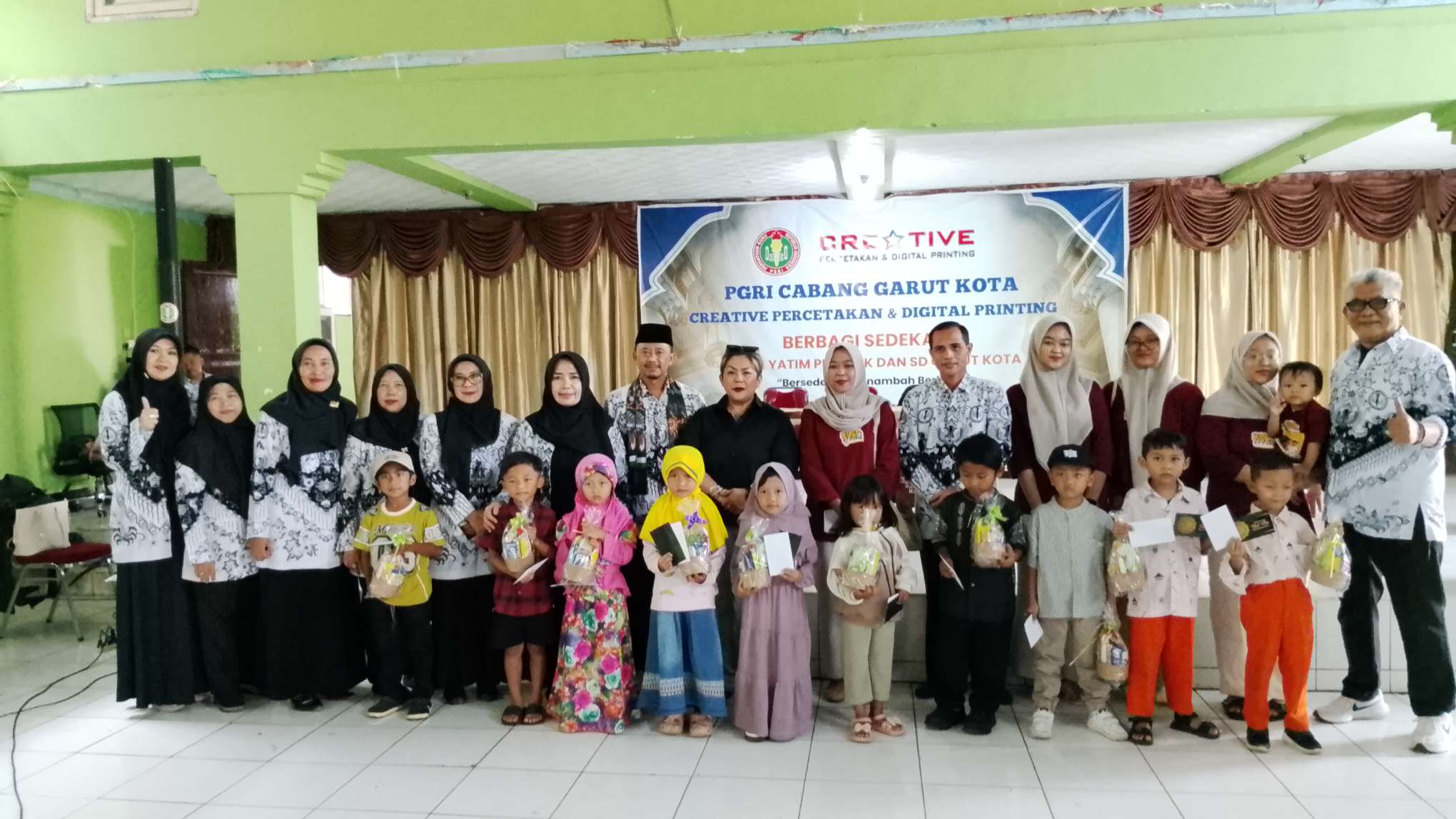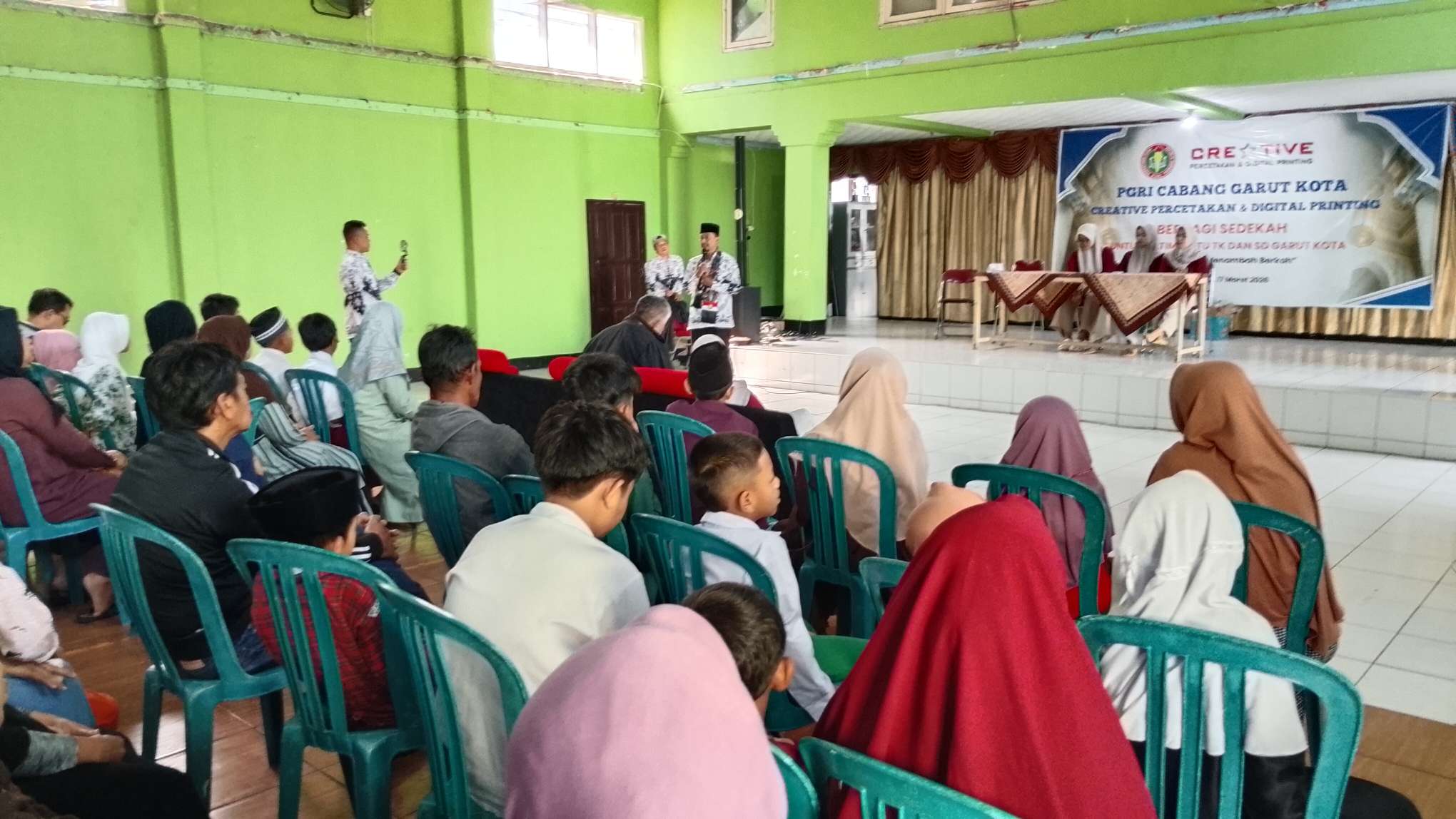 GARUT — Persatuan Guru Republik Indonesia (PGRI) Cabang Garut Kota berkolaborasi dengan Creative Percetakan & Digital Printing menggelar kegiatan berbagi sedekah bagi anak yatim piatu jenjang TK dan SD se-Garut Kota. Kegiatan bertajuk “Bersedekah Menambah Berkah” ini berlangsung di GOR PGRI, Jalan Jenderal Sudirman No. 1, Kelurahan Kota Kulon, Kecamatan Garut Kota, Kabupaten Garut, Jawa Barat, Selasa (17/3/2026).