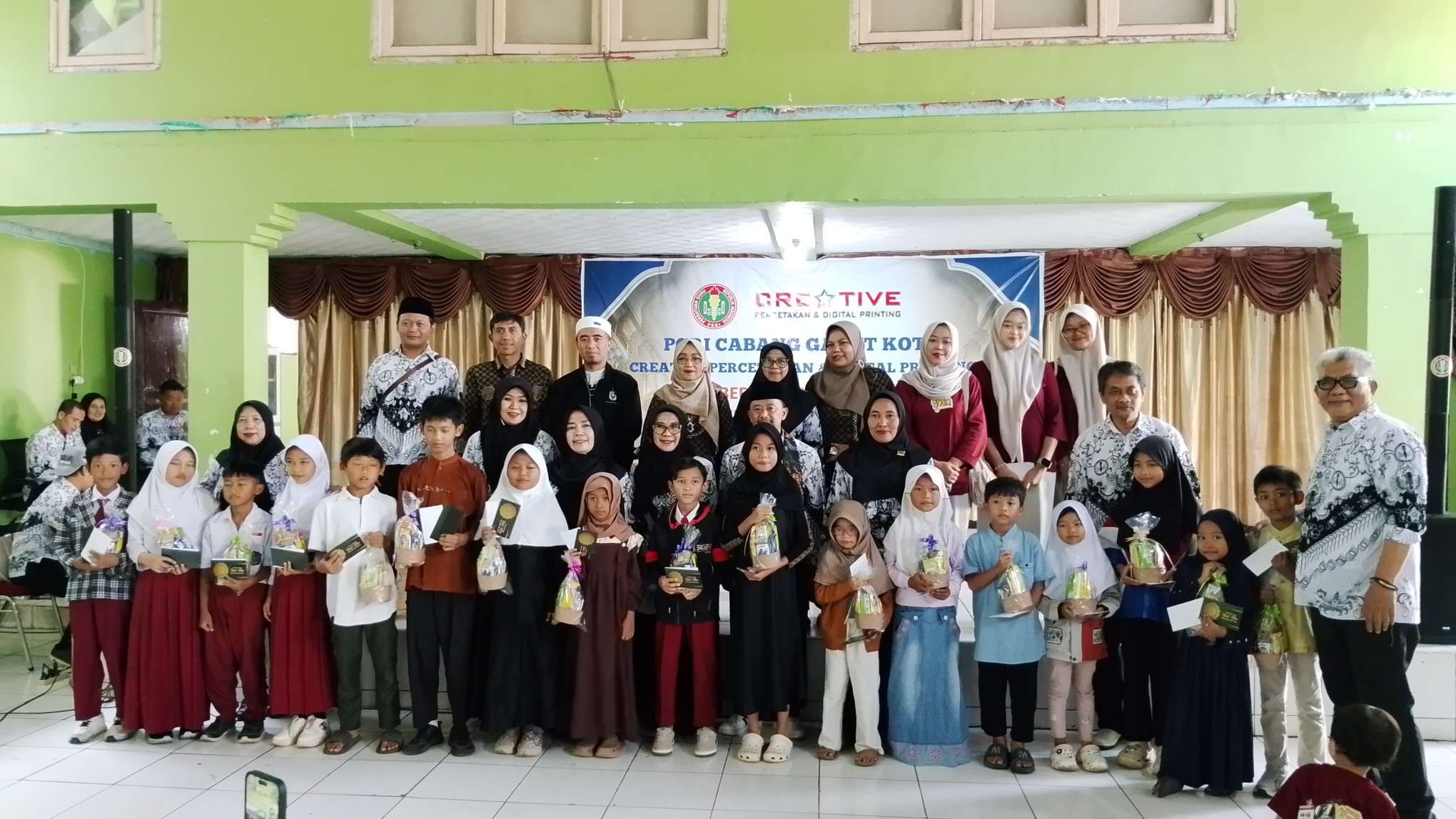 Sementara itu, Ketua PGRI Cabang Garut Kota, Rahmat, S.Pd., turut menyampaikan doa dan harapan agar Creative Percetakan & Digital Printing semakin maju dan berkembang. Ia juga mendoakan anak-anak yang hadir kelak dapat menjadi kebanggaan dan memberikan kebahagiaan bagi orang tua mereka, termasuk menjadi anak-anak yang mampu menghadiahkan “mahkota” kemuliaan bagi orang tuanya di akhirat.