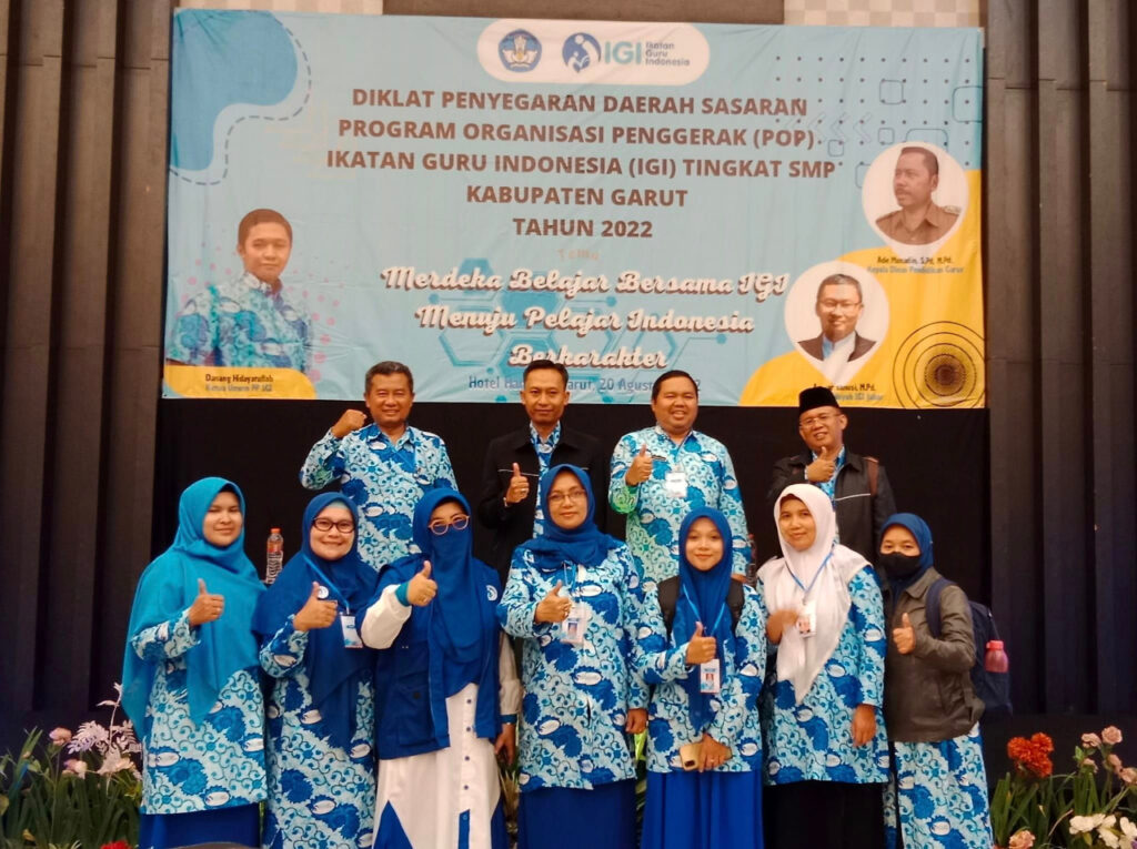 Tahun 2022 kita melaksanakan Program POP Diklat penyegaran dan pendampingan secara luring di hotel Harmoni Garut yang dihadiri Kepala Dinas Pendidikan yang diwakili bapak Muhamad Yusuf Safari, S.Pd.Msi sebagai Sekretaris Dinas Pendidikan Kabupaten Garut didampingi oleh bapak Entib Satibu, S.Sos.MM.Pd., dan ibu Dra. Tuti Herawati, MM.Pd (kasi Pembinaan TK), Ketua Panitia Pusat POP IGI tingkat SMP Ibu Nurazizah beserta ibu Rikza, Ketua Wilayah IGI provinsi Jawa Barat Bapak H. Anwar Sanusi, M.Pd, para guru di SMP binaan sebanyak 112 peserta,