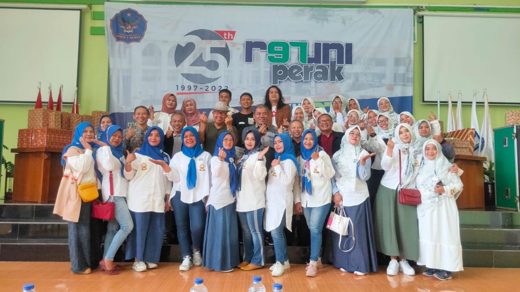 TARKID, (teraskandaga.com).- Mengusung tema “Mengenang Cerita Indah Saat Bersama, Merajut Tali Silaturahmi Sepanjang Masa”, siswa SMKN 1 Garut angkat tahun 1997 menggelar Reuni Perak di Gedung Motekar SMKN 1 Garut, Jl. Cimanuk No. 309A, Kelurahan Sukagalih, Kecamatan Tarogong Kidul, Sabtu (8/10/2022).