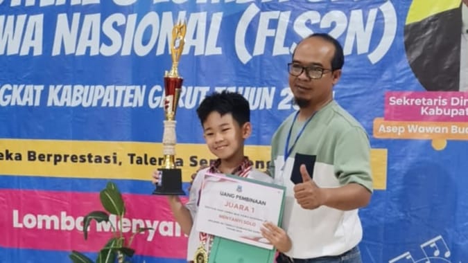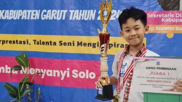 teraskandaga.com – Riskley Nakata, siswa kelas 4 SD Daya Susila Garut Kota berhasil meraih juara pertama Menyanyi Solo pada FLS2N Tingkat Kabupaten Garut 2024 yang digelar di Gedung PGRI Cabang Tarogong Kidul pada Sabtu (27/4/2024).
