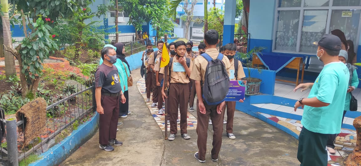 Terpantau, pemberangkatan di sesi serta didampingi oleh guru, dan sebelum berangkat masing-masing kelompok mendapat pengarahan diantaranya, jika dijalan menemukan sampah untuk mengambil dan memasukkan ke kantong kresek yang sudah siapkan.