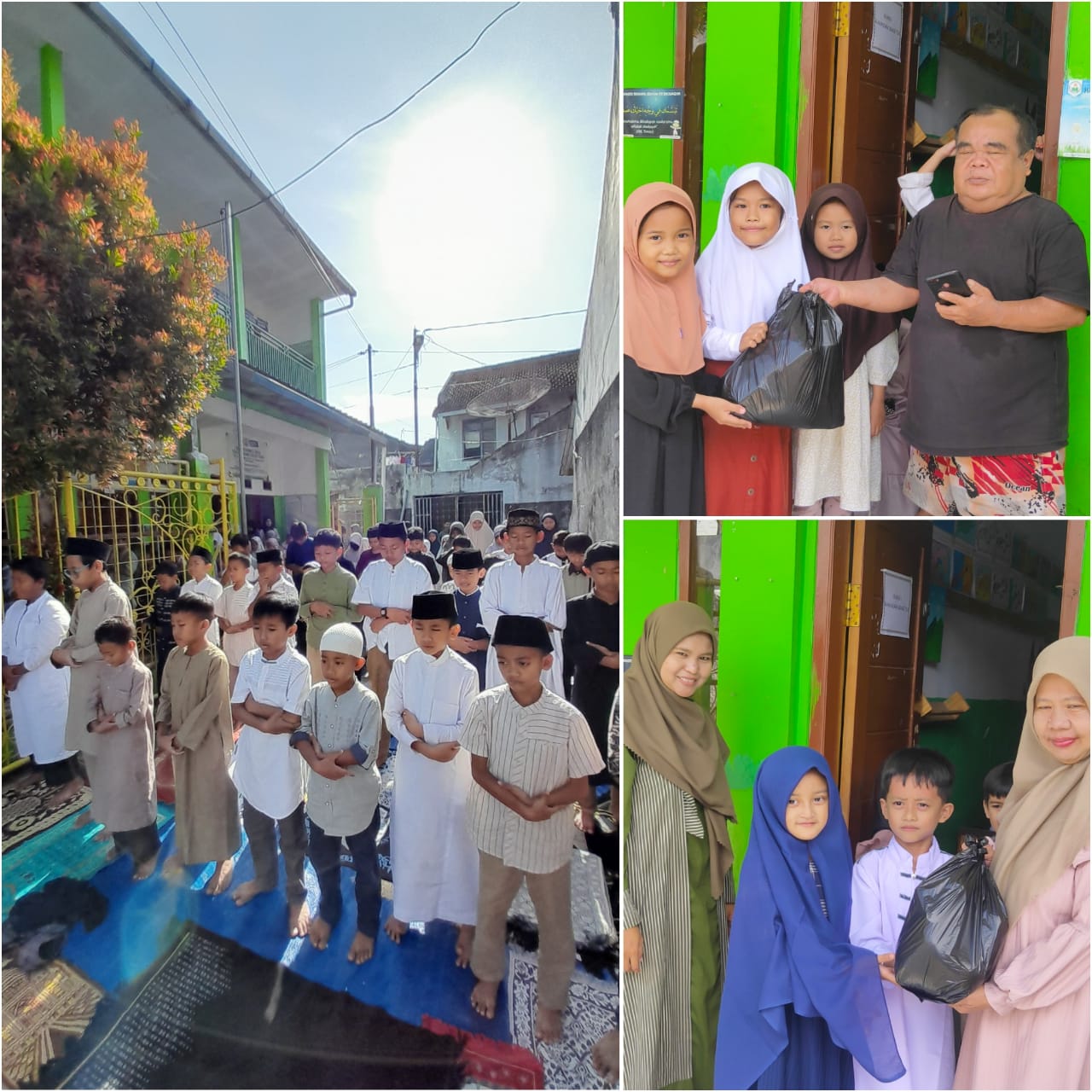 Garut – SD Al-Kindi Islamic Excellent School menggelar kegiatan simulasi Salat Idulfitri serta Bakti Sosial (Baksos) dalam rangka penutupan Pesantren Ramadhan. Acara ini berlangsung di sekolah yang beralamat di Jl. Mesjid No. 6 Baleendah, Kelurahan Pataruman, Kecamatan Tarogong Kidul, Kabupaten Garut, Jawa Barat pada Jumat, 21 Maret 2025.