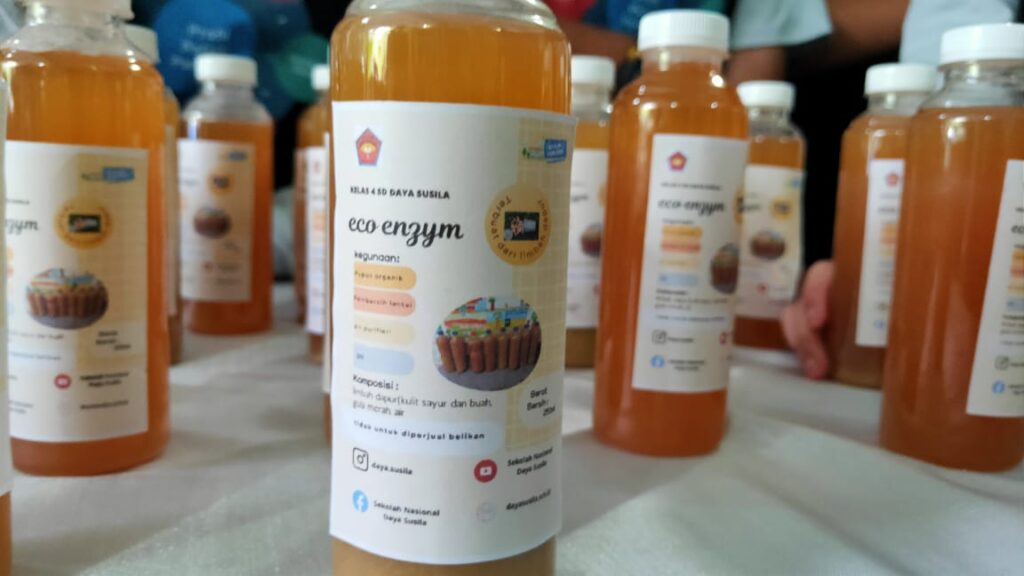 “Eco enzym ini dibuat dari sampah dapur berupa kulit sayuran dan buah-buahan, gula merah dan air, dengan proses fermentasi selama tiga bulan. Manfaatnya diantara dapat dijadikan pupuk organik, pembersih lantai, dan lainnya,” pungkas Tedi. ***Jajang Sukmana