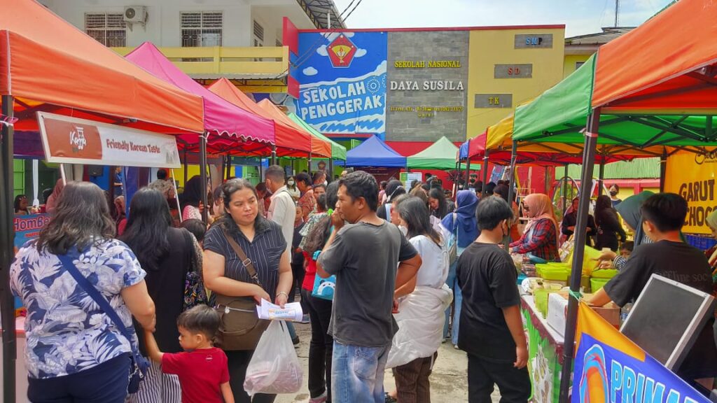 GARKOT, (teraskandaga.com).- Sekolah penggerak SD Daya Susila memamerkan karya siswa dan pentas seni, serta pasar mini dilingkungannya di Jl. A. Yani No. 36, Kelurahan Pakuwon, Kecamatan Garut Kota, Kamis (22/12/2022).
