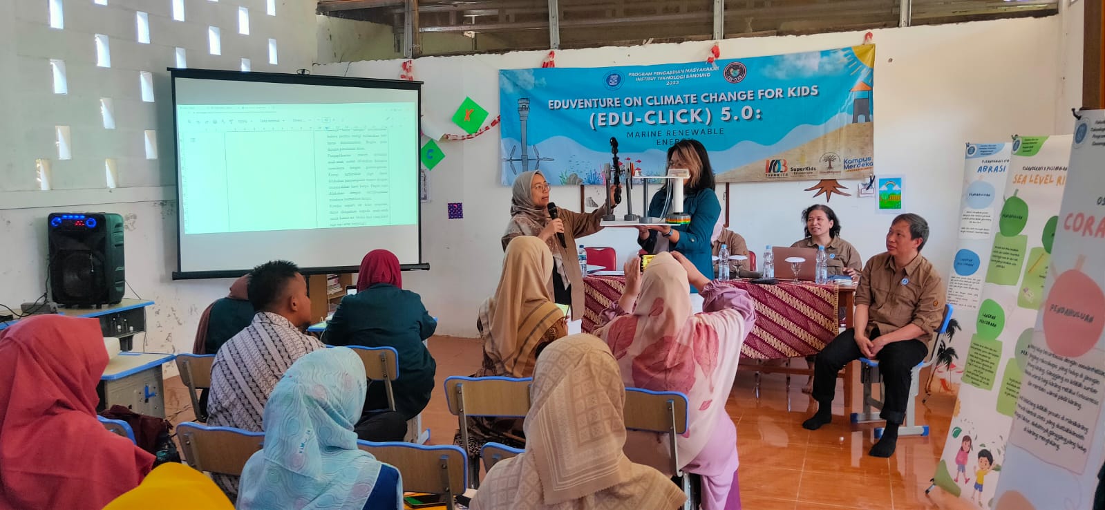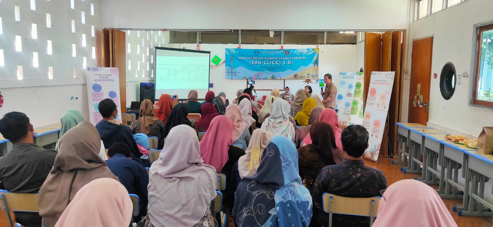 teraskandaga.com – SD Kreospora Islamic Ecoschool sangat beruntung adanya Mahasiswa ITB Program Studi Oseanografi yang melakukan pengabdian kepada masyarakat, terkait perubahan iklim, dampaknya terhadap laut, dan energi baru terbarukan dari laut, mereka menyampaikan Eduventure on Climate Change for Kids (Edu-Click) atau pendidikan tentang perubahan iklim untuk anak-anak.