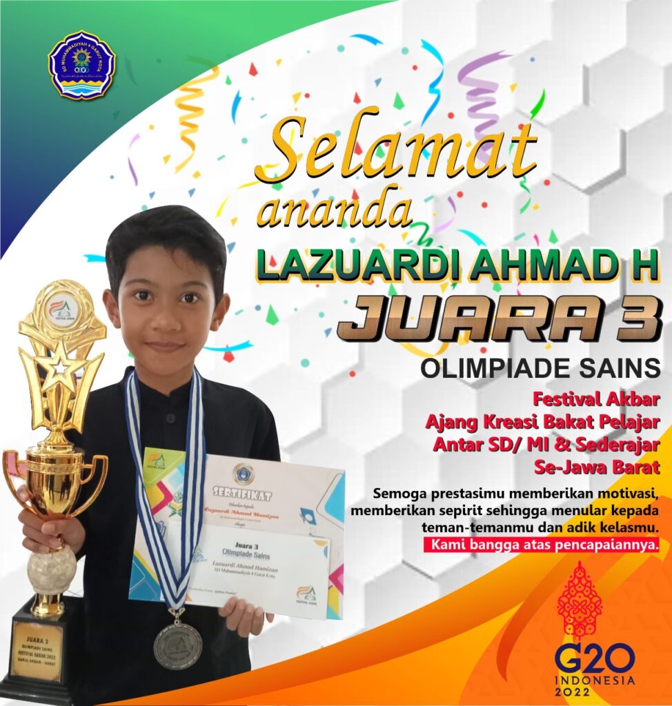 Kemudian tanggal 26, siswanya meraih 2 emas (Rafa), 2 perak (Abyanul dan Asyifa dari kejuaraan Pencak Silat Pusaka Nagara Open, dan terbaru meraih juara 3 Olimpiade Sains (Lazuardi Ahmad H) pada Festival Akbar Ajang Kreasi Bakat Pelajar antar SD/MI sederajat se-Jawa Barat.
