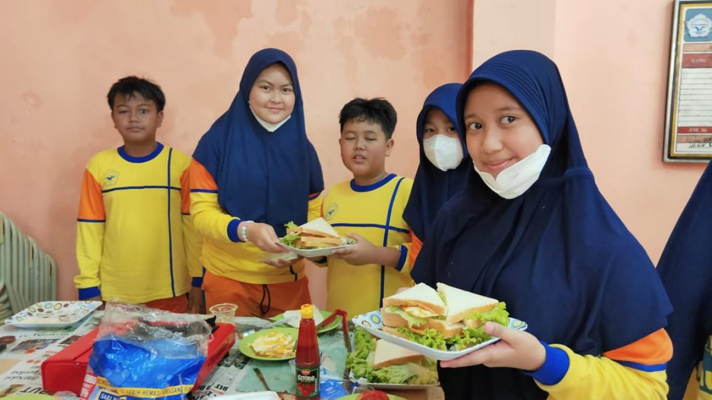 “Alhamdulillah hari pertama siswa mengunjungi pasar swalayan dengan didampingi guru-guru, belanja bahan-bahan sarapan pagi sesuai topik “Sehat Makananku, Sehat Tubuhku”, dan di hari kedua ini mereka mengolahnya untuk dimakan bersama satu tim, setelah itu masing-masing tim saling mencicipinya,” ungkapnya.