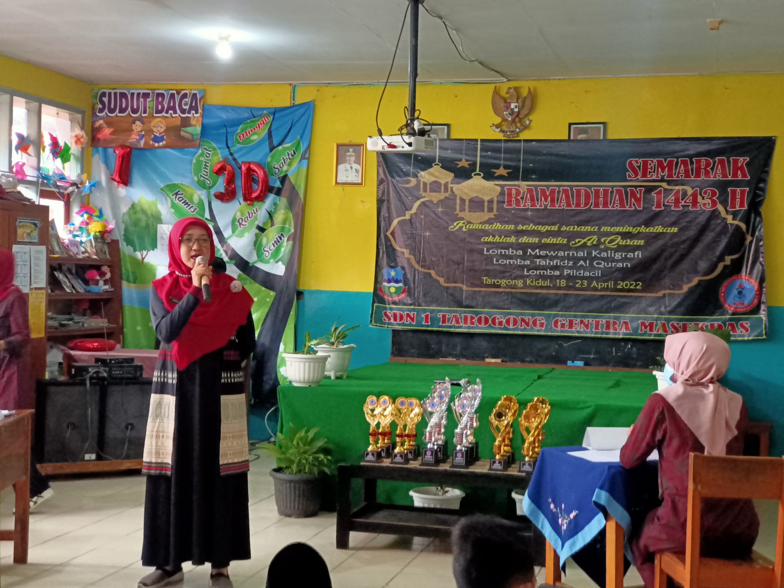 Untuk itu, dengan mengusung tema “Ramadhan Sebagai Sarana Meningkatkan Akhlak dan Cinta Al-qur’an”, mulai Senin-Sabtu (18-23/4/2022), SDN 1 Tarogong Gentra Masekdas menggelar lomba-lomba yaitu Mewarnai Kaligrafi, Tahfidz Al-Qur’an, dan Pildacil yang digelar dilingkungan sekolah.