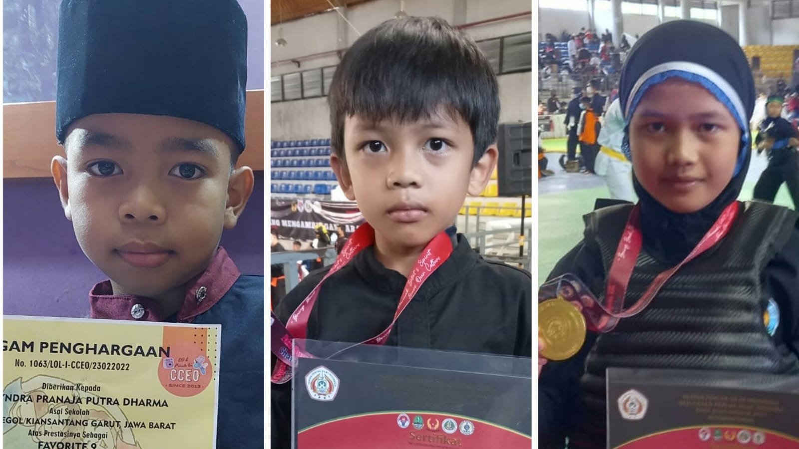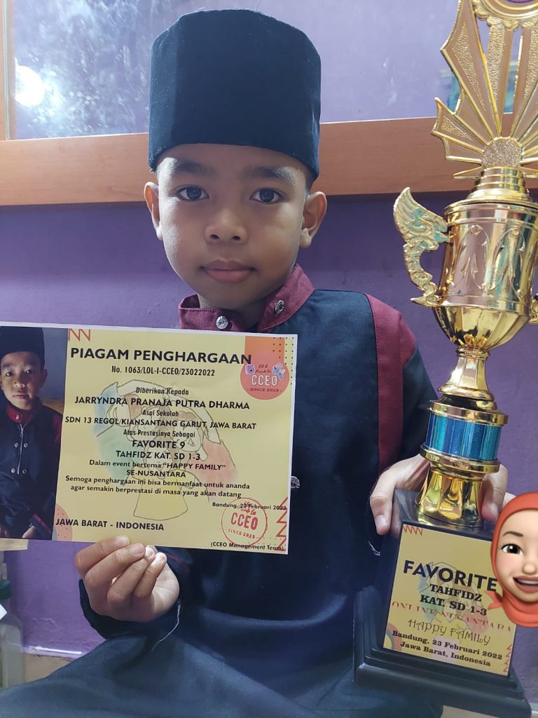 Ketiga juara tersebut yaitu Jarryndra Pranaja Putra Dharma (kelas 2B), berhasil masuk favorite 9 Tahfidz dalam event bertema “Happy Family” se-Nusantara, dan dua pendekar adik-kakak yaitu Rain Fitra Suhendar (kelas 1A), Mutiara Fitria Suhendar (kelas 6B) berhasil meraih Medali Emas Pencak Silat tingkat Nasional.