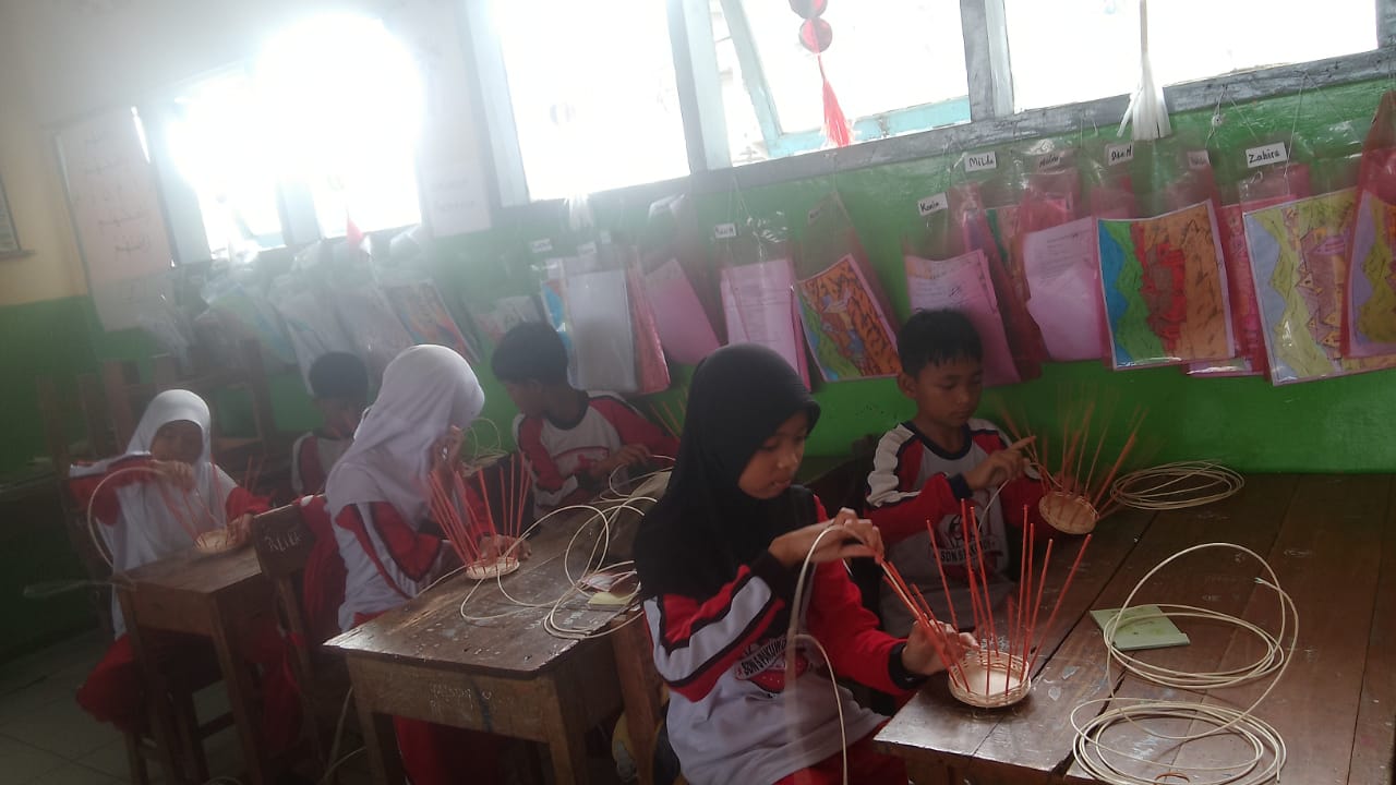 teraskandaga.com – SDN 3 Pakuwon menanamkan benih kreatif pada siswa, salah satu menggali bakat minat di bidang Kriya anyam. Selain untuk melatih keterampilan siswa dalam program pelaksanaan PTS (Penilaian Tengah Semester) juga dapat dipraktikan di rumah masing-masing dan menghasilkan nilai jual, serta dikembangkan sehingga menambah pendapatan keluarganya.