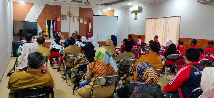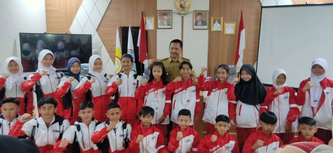 Kepala Dinas Pendidikan Kabupaten Garut, Ade Manadin, S.Pd., M.Pd., secara resmi memberangkatkan sebanyak 10 kontingen siswa SMP dan 12 kontingen siswa SD juara O2SN (Olimpiade Olahraga Siswa Nasional) tingkat Kabupaten Garut di Aula SMPN 2 Garut, Jl. Ahmad Yani No. 40-28, Kelurahan Pakuwon, Kecamatan Garut Kota, Kabupaten Garut, Provinsi Jawa Barat, Senin (31/7/2023). ke-22 kontingen tersebut akan mengikuti olimpiade tingkat Provinsi Jawa Barat mulai dari tanggal 1 -3 Agustus 2023. ***Jajang Sukmana