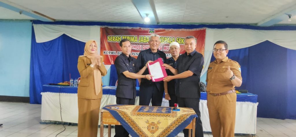 KOTA KULON, (teraskandaga.com).- Tujuh promosi dan tujuh rotasi jabatan kepala sekolah di lingkungan Koordinator Wilayah Bidang Pendidikan Kecamatan Garut Kota melakukan serah terima jabatan (Sertijab) di Gedung PGRI Cabang, Jl. Sudirman No. 1 Kelurahan Kota Kulon, Senin (11/7/2022).
