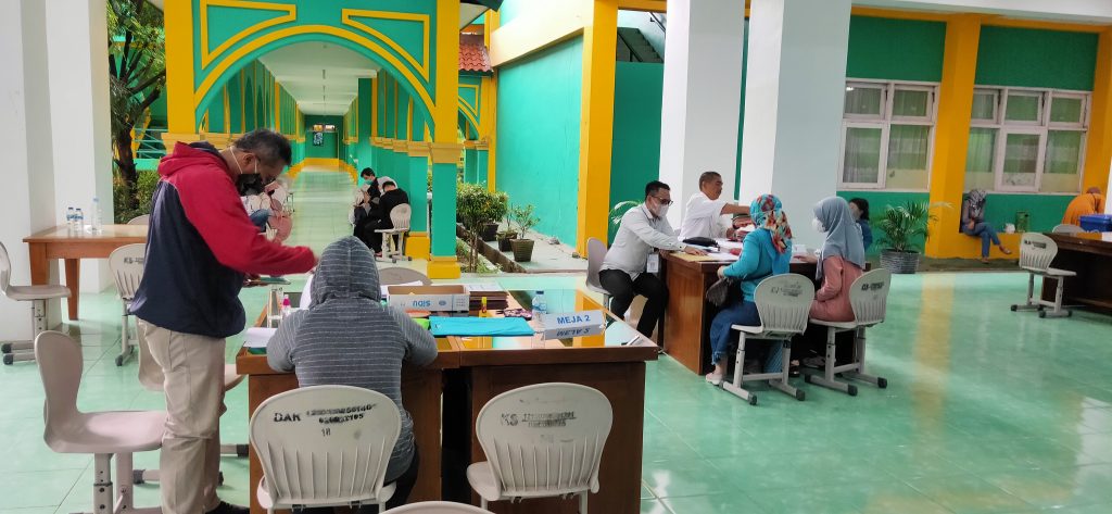 teraskandaga.com – Dengan memperhatikan protokol kesehatan Covid-19 yang ketat, calon peserta didik yang lolos pada pendaftaran tahap pertama, melakukan pendaftaran ulang di area terbuka Sasana Wibawa Mukti SMKN 1 Garut.