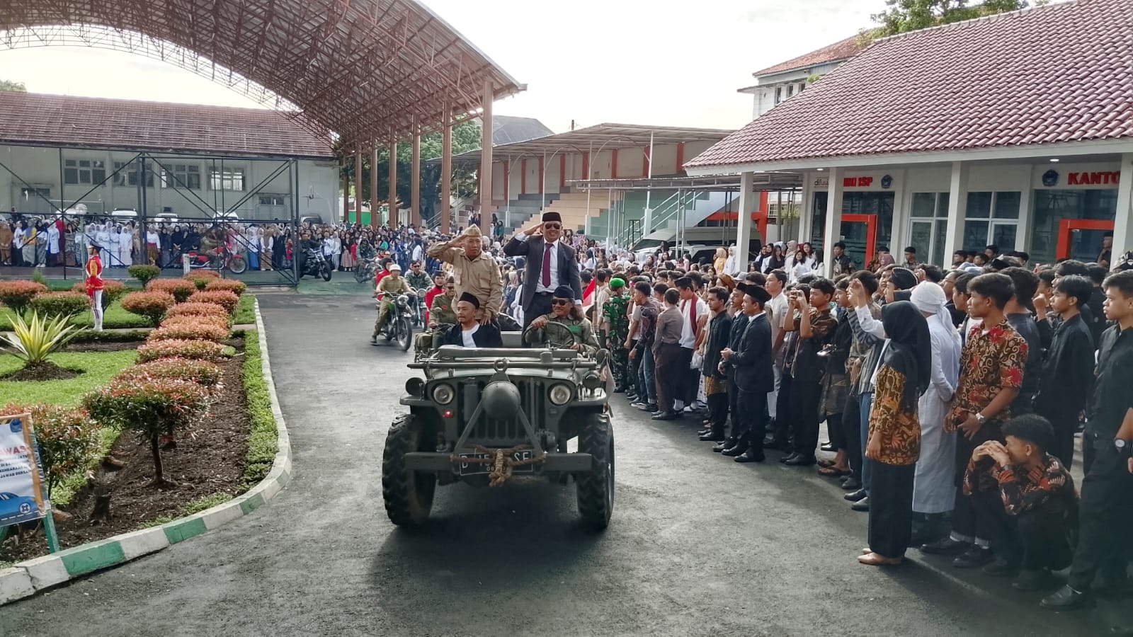 Dalam momen tersebut, Kepala SMKN 1 Garut, Dr. H. Asep Rudiana, M.Pd., tampak menaiki mobil Willis dan mengelilingi area upacara sebanyak tiga putaran. Aksi tersebut diikuti iring-iringan motor jadul yang dikendarai para guru dan peserta didik. Sambil mengepalkan tangan dan meneriakkan pekik “Merdeka!”, Kepala Sekolah memberi salam hormat kepada seluruh peserta upacara yang menyemarakkan suasana penuh semangat kepahlawanan.