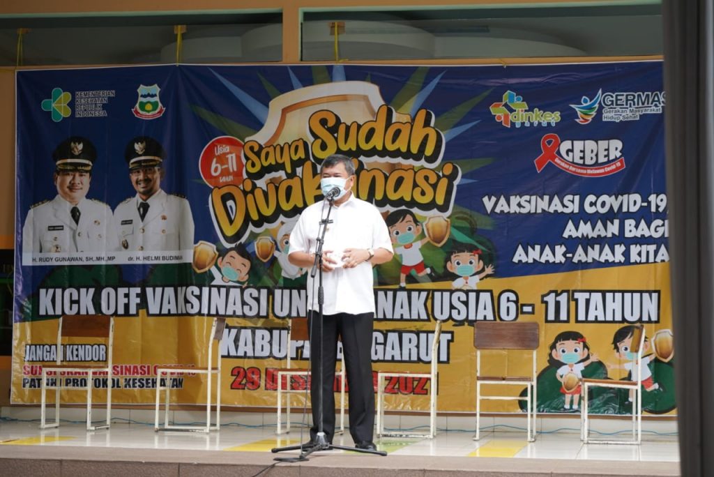 Bupati Garut, Rudy Gunawan mengharapkan, capaian vaksinasi untuk anak usia 6-11 tahun di tanggal 30 Januari 2022 atau sebelum HJG bisa tercapai 100%.