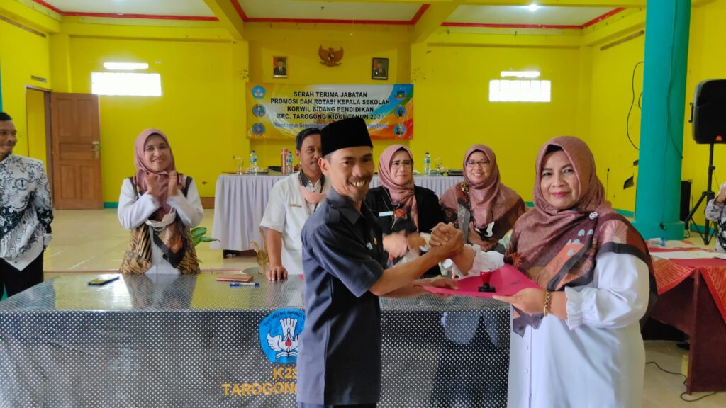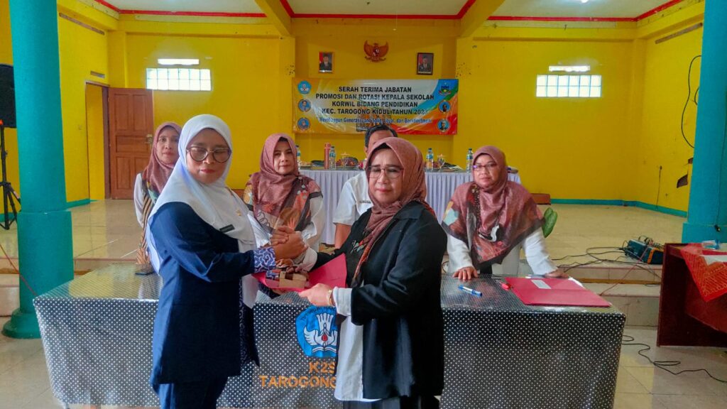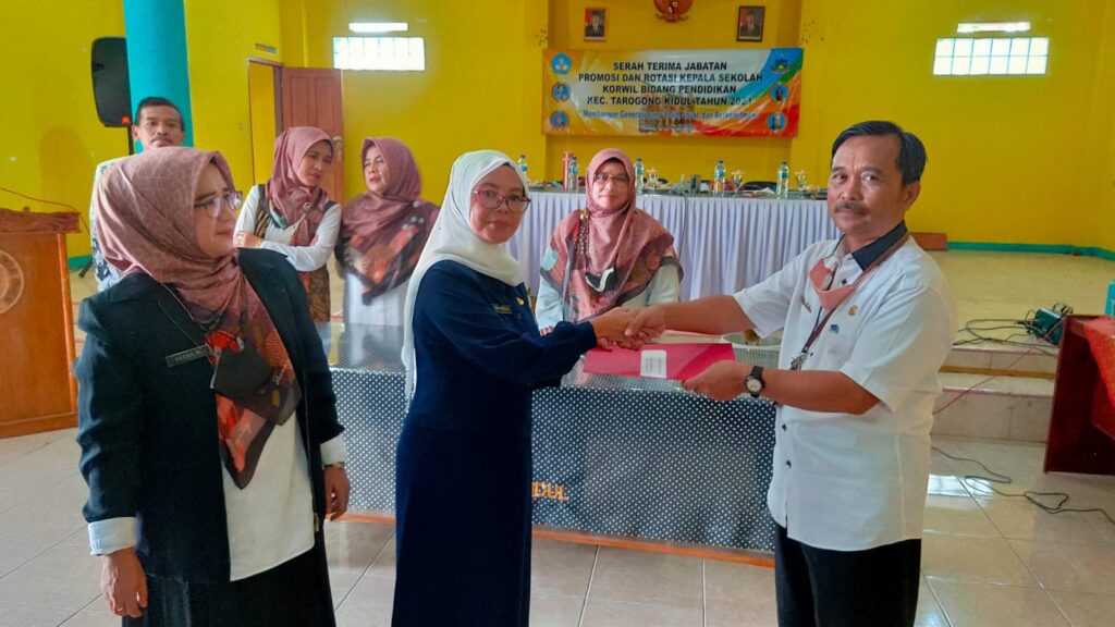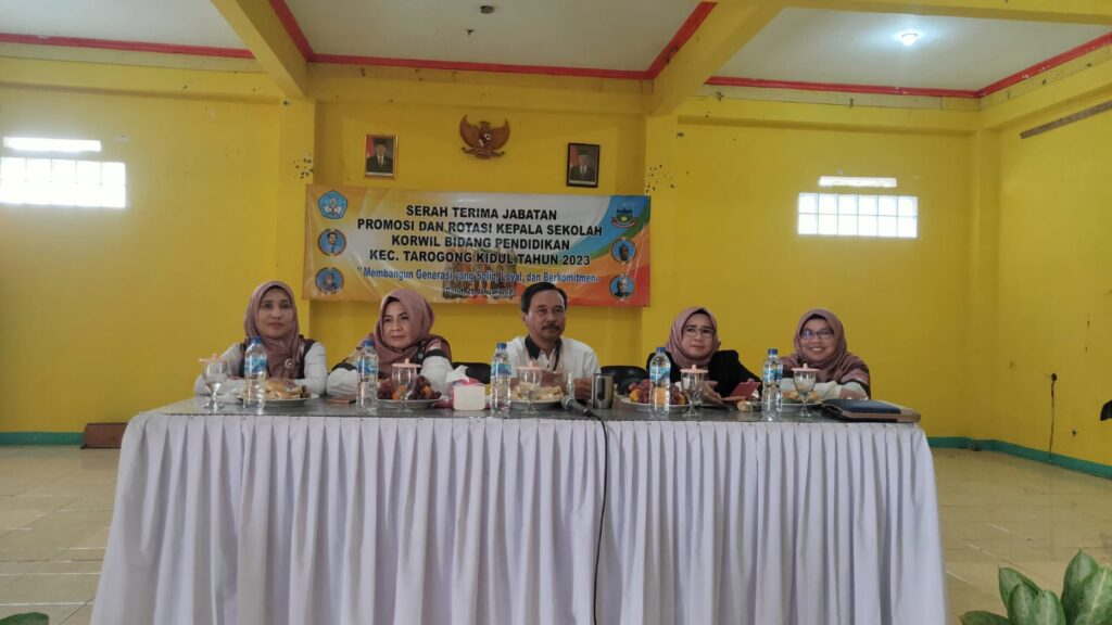 TARKID, (teraskandaga.com).- Mengusung tema “Membangun Generasi yang Solid, Loyal, dan Berkomitmen”, sebanyak sembilan kepala sekolah di lingkungan Korwil Bidang Pendidikan Kecamatan Tarogong Kidul melakukan Serah Terima Jabatan (Sertijab) promosi dan rotasi di Aula PGRI Cabang Tarogong Kidul, Rabu (25/01/2023), dengan disaksikan Korwil, Edi Sutrisno, S.Pd., M.Pd., Korwas Dedah Maryonah, M.Pd., beserta tiga pengawas, dan para kepala sekolah lainnya.