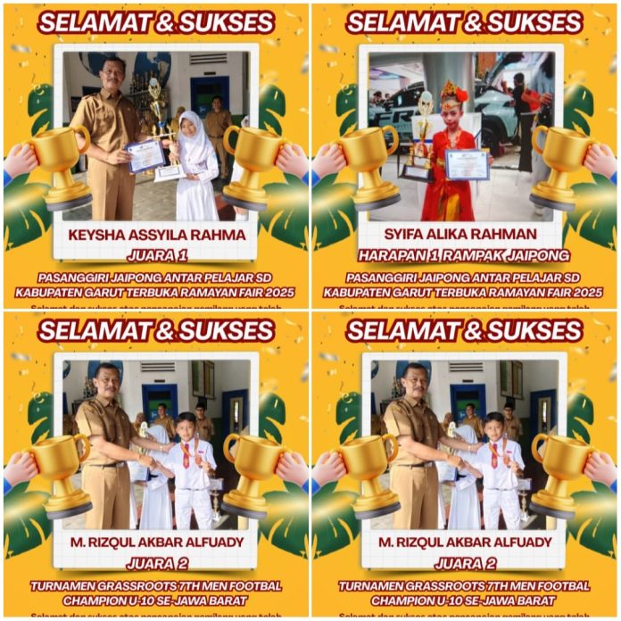 Sementara itu, M. Rizqul Akbar Alfuady sukses menjadi Juara 2 Turnamen Grassroots 7th Men Football Champion U-10 se-Jawa Barat, dan Syifa Alika Rahman meraih Juara Harapan 1 Rampak Jaipong Pasanggiri Jaipong Antar Pelajar SD Kabupaten Garut Terbuka Ramayana Fair 2025.