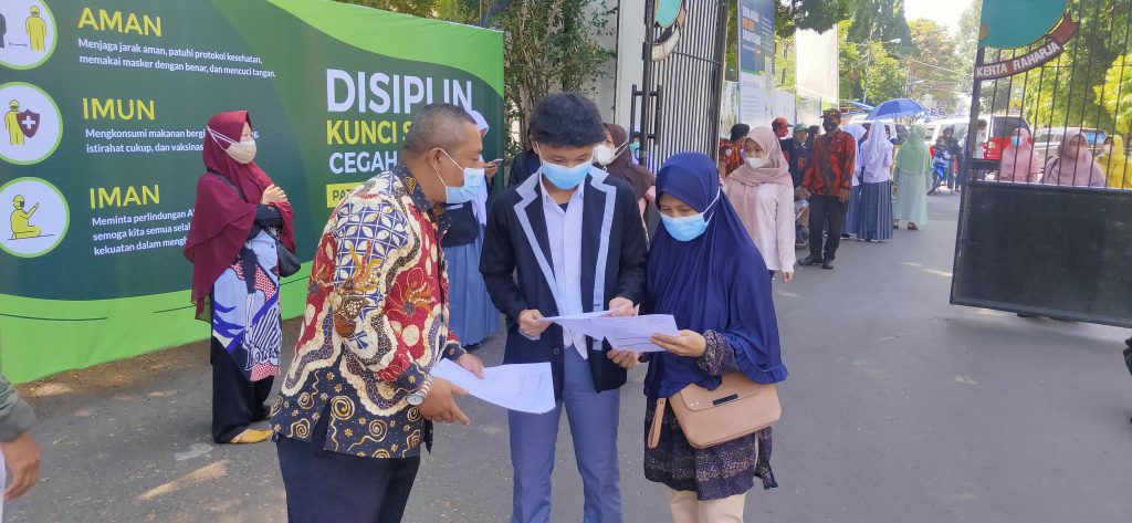 Untuk itulah Kepala KCD Wil. XI, Aang Karyana bersama Kepala SMAN 1 Garut, Drs. Sumpena Permana Putra, SH., M.MPd., turun langsung mengawal pelaksanaan vaksinasi kepada sejumlah 1.296 peserta didik SMAN 1 Garut di Sentra Vaksinasi BPBD Jabar yang digelar di Gedung Pendopo, Kamis (29/07/2021).