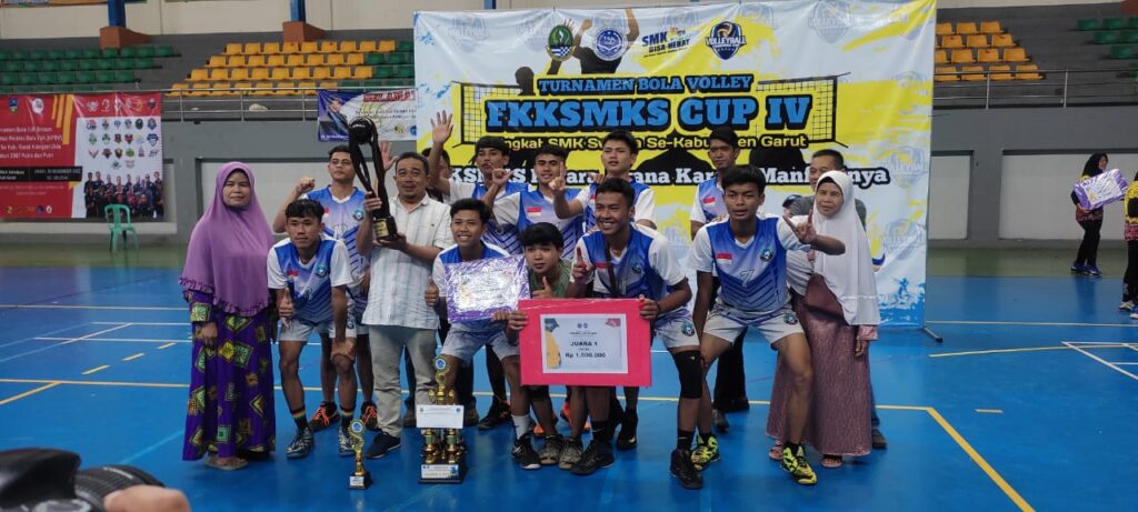 KARANGPAWITAN, (teraskandaga.com).- Tim bola voli putra SMK IT Al-Muhajirin berhasil meraih trophy juara 1 setelah menumbangkan tim SMK Nurul Muttagien dengan skor 3-2 pada turnamen bola voli antar SMK Swasta se-Kabupaten Garut dalam kejuaraan FKKSMKS Cup ke-IV yang digelar SOR Ciateul.