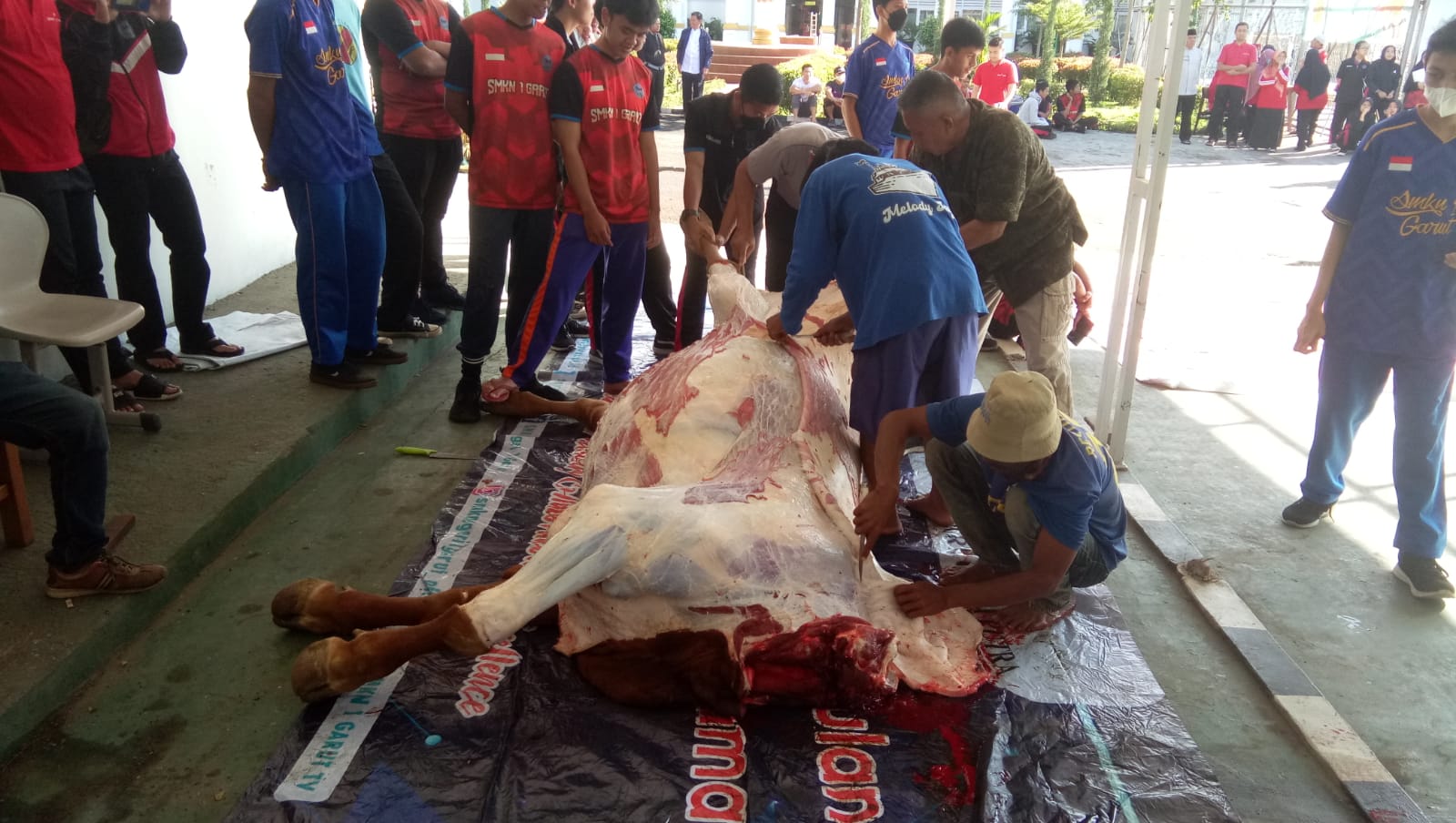 teraskandaga.com – SMKN 1 Garut melaksanakan penyembelihan hewan qurban sebanyak 3 ekor sapi untuk 21 shohibul qurban (14 orang Pendidik, 4 orang Tenaga Kependidikan, 1 orang Pengurus Komite Sekolah, 1 orang OB, dan 1 orang Security Sekolah).