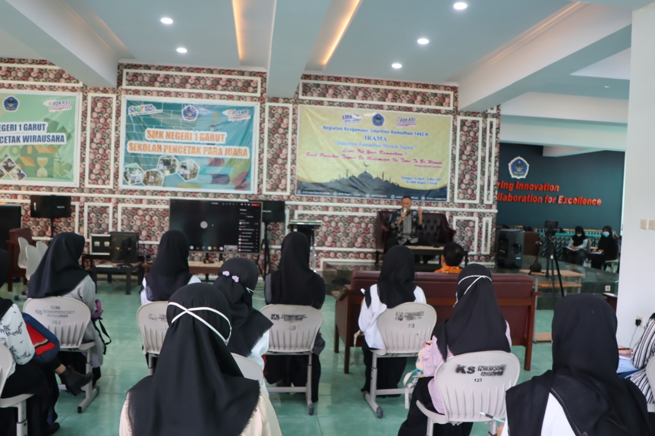 teraskandaga.com – SMKN 1 Garut menggelar kegiatan keagamaan Smartren Ramadhan 1442 Hijriah dengan tema IRAMA “Indahnya Ramadhan Meraih Taqwa” Light Up Your Ramadhan! Raih Predikat Taqwa Be Maximizer It’s Time To Be Winner.