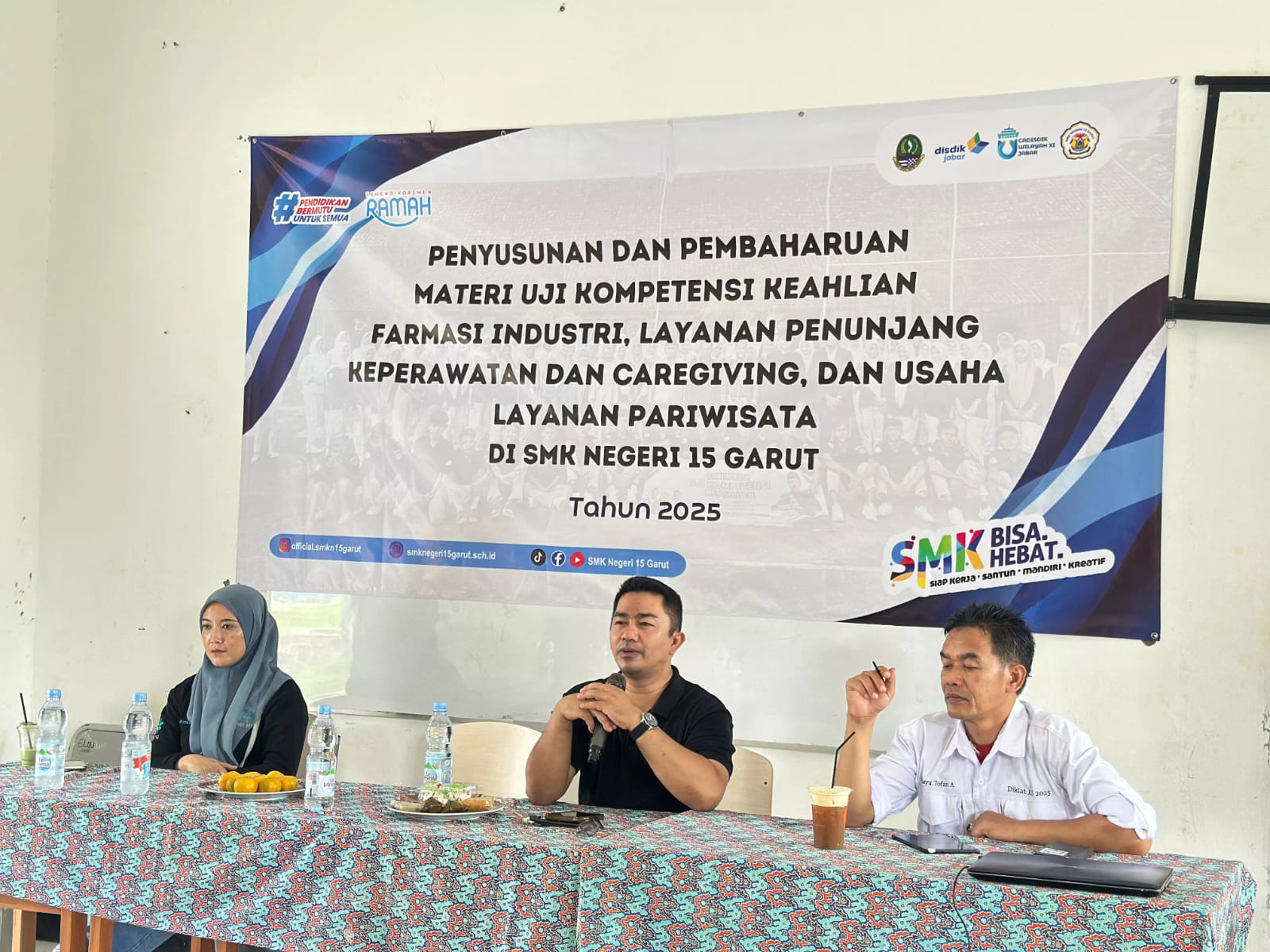 GARUT, 15 Desember 2025 – Menjawab tantangan era digital yang semakin kompleks, SMK Negeri 15 Garut menggelar kegiatan sosialisasi dan sinkronisasi kurikulum terkait pembaruan materi Uji Kompetensi (Ujikom). Kegiatan ini menghadirkan narasumber Dr. H. Doni Romdon Mubarokah, S.Kep., Ners., M.M.R.S., Kepala Bidang Mutu dan Akreditasi, yang memberikan arahan strategis mengenai standar kelulusan peserta didik SMK di masa depan.