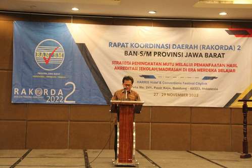 Ketua BAN-S/M Provinsi Jawa Barat Drs. Totoh Santosa, MM. dalam sambutannya menyampaikan, kegiatan ini merupakan rangkaian Rapat Koordinasi Daerah (RAKORDA) ke-2 tahun 2022 BAN-S/M Provinsi Jawa Barat, dalam rangka melaksanakan evaluasi terkait dengan hasil kinerja BAN-S/M Provinsi Jawa Barat.