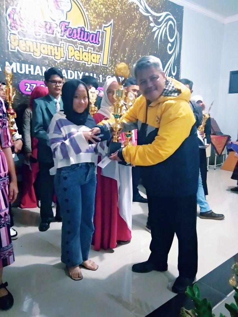 CILAWU, (teraskandaga.com).- SMPN 1 Cilawu kembali menambah pundi-pundi prestasi, kali ini ditorehkan dari bidang tarik suara. Dia adalah Vindia Belend siswi kelas 9-A telah berhasil meraih juara pada Gebyar Festival Penyanyi Pelajar ke-1 yang selenggarakan SMAM 1 Garut pada hari Sabtu-Minggu (27-28/2022) di Aula STAIDA – SMAM 1 Garut.