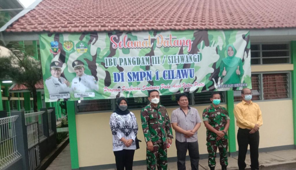 teraskandaga.com – Mungkin, tak banyak sekolah yang mendapat perhatian dari Kodam III/Siliwangi. Oleh sebab itu, Alhamdulillah, SMPN 1 Cilawu terpilih oleh Ketua Persit KCK Pangdam III/Siliwangi, Evi Agus Subiyanto dalam memberikan santunan kepada anak yatim piatu peserta didik SMPN 1 Cilawu, Kecamatan Cilawu, Kabupaten Garut, Rabu (27/01/2022).