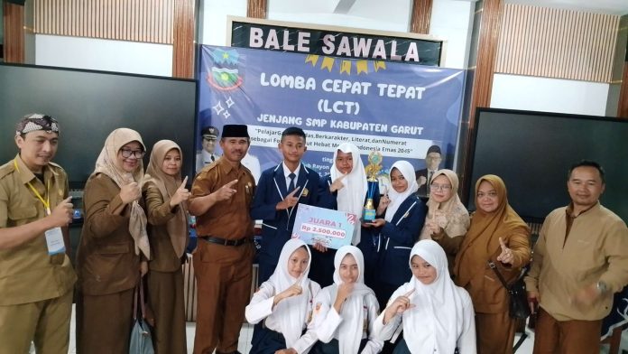 GARUT — Sebanyak 75 sekolah dari total 104 satuan pendidikan di lingkungan Sub Rayon 6/Satkorwil 6 mengikuti Lomba Cepat Tepat (LCT) tingkat Sub Rayon 6/Satkorwil 6 yang digelar di Bale Sawala SMPN 1 Bayongbong, Senin (20/4/2026). Kegiatan ini mengusung tema “Pelajar Garut Cerdas, Berkarakter, Literat, dan Numerat sebagai Pondasi Garut Hebat Menuju Indonesia Emas 2045.”