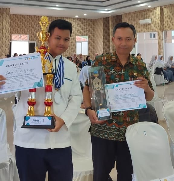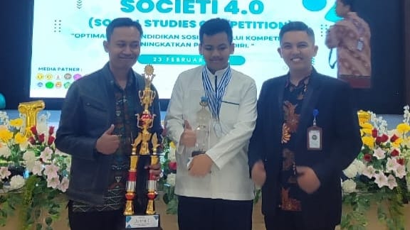 Reksa Rizky Sudrajat bersama Karnata Adiwiria, S.Pd., Pembimbing Ekstrakuler Akademik IPS.