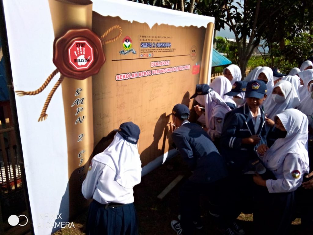 Deklarasi Sekolah Bebas Perundungan di SMPN 2 Cigedug, ditandai dengan penandatanganan fakta deklarasi oleh Kapol sub sektor Cigedug, kepala sekolah diikuti oleh seluruh guru dan peserta didik.