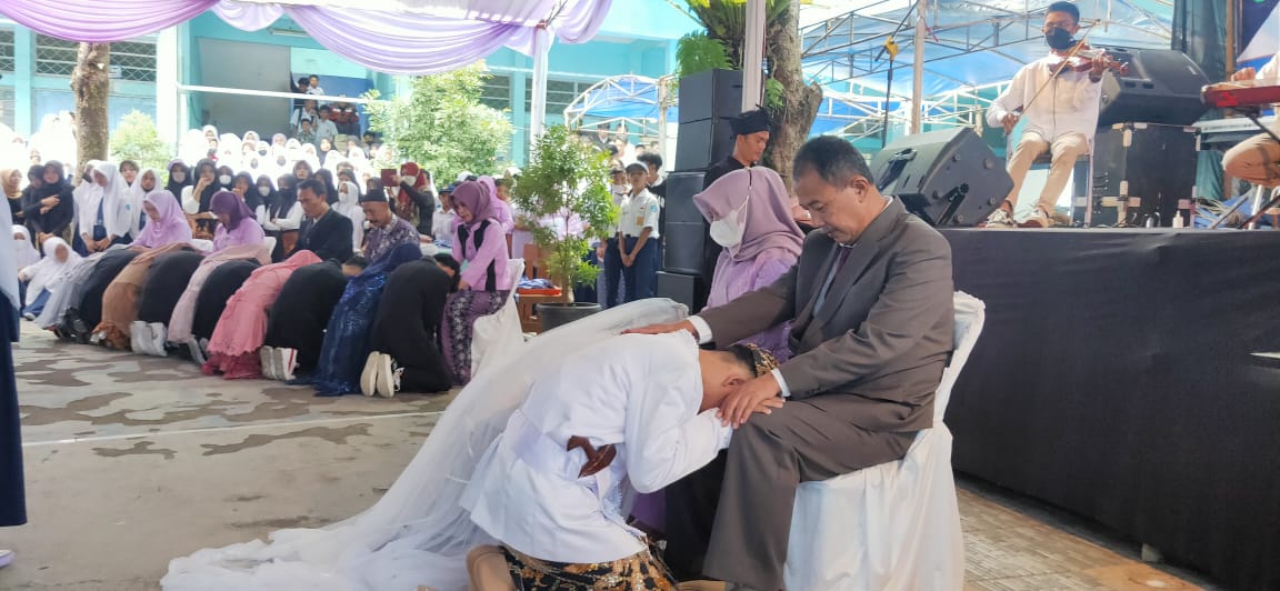Dikemas dengan upacara adat Sunda, kepala sekolah dan beberapa wali kelas menerima “sungkeman” dari perwakilan siswa untuk berpamitan sekaligus mengucapkan terima kasihnya, selama tiga tahun telah menerima ilmu dri SMPN 5 Garut.