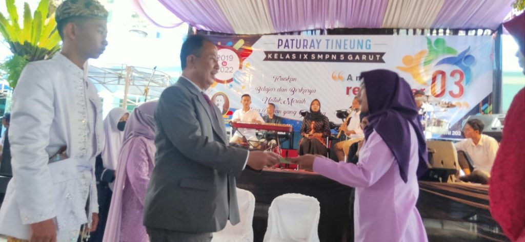 Mengusung tema “Teruskam Belajar dan Berkarya untuk Meraih Masa Depan yang Gemilang”, acara “Paturay Tineung” a moment to remember 03 years ago” 2019 to 2022 ini di gelar Komite SMPN 5 Garut di lingkungan sekolah Jl. Gunung Payung No. 36 Kelurahan Ciwalen, Kecamatan Garut Kota, Senin (13/6/2022).