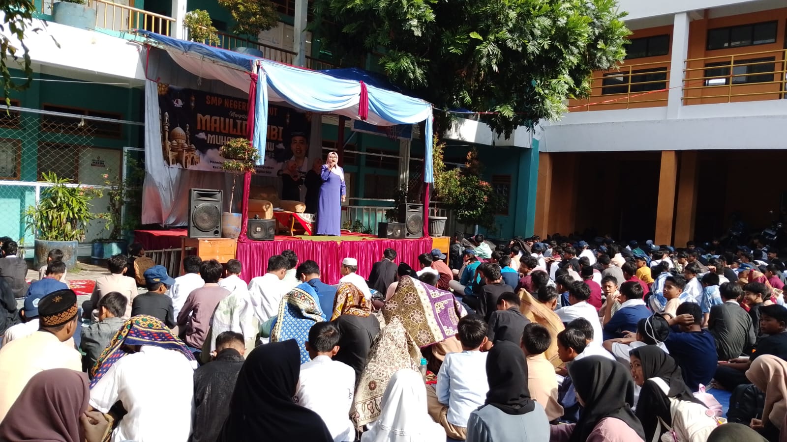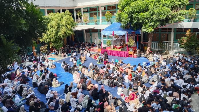 GARUT, 19 September 2025 – UPT SMPN 5 Garut menggelar peringatan Maulid Nabi Muhammad SAW 1447 Hijriah di lapangan upacara sekolah, Jl. Gunung Payung No. 36, Kelurahan Ciwalen, Kecamatan Garut Kota, Kabupaten Garut, Jawa Barat pada Jumat (19/9/2025).