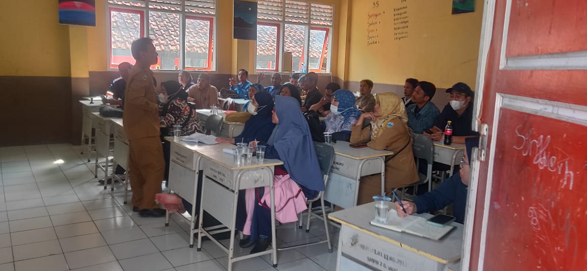 GARKOT, (teraskandaga.com).- Dinas Pendidikan Kabupaten Garut melalui Kasi Kurikulum Bidang SMP bersama pengawas SMP mensosialisasikan Penilaian Sumatif Kenaikan Kelas (PSKK) jenjang SMP Kabupaten Garut tahun pelajaran 2022/2023 di SMPN 2 Garut, Jl. Ahmad Yani No. 40-28, Kelurahan Pakuwon, Kecamatan Garut Kota, Kabupaten Garut, Provinsi Jawa Barat, Senin (22/5/2023).